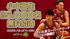 越谷アルファーズ「2025年12月27日,28日」小中高生 最大5,000名様 無料招待