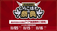 越谷アルファーズ しらこばとの祭典 埼玉県在住の初めて観戦ペア無料ご招待。2025年11月5日、15日-16日、埼玉県越谷市の越谷市立総合体育館で開催されるバスケットボールBリーグの越谷アルファーズのホームゲームに、「埼玉県在住の初めて観戦」の方を、300名様、無料ご招待。